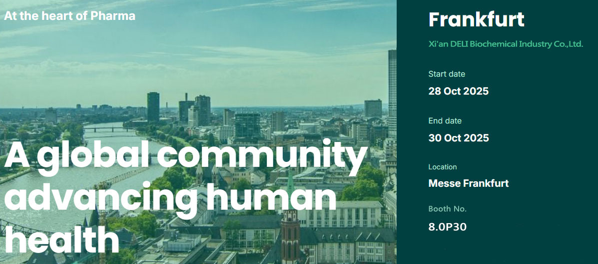 Xian Deli Biokemisk Industry Co., Ltd. vil deltage i CPhI Europe 2025, som afholdes fra den 28.-30. oktober 2025 i Frankfurt, Tyskland.