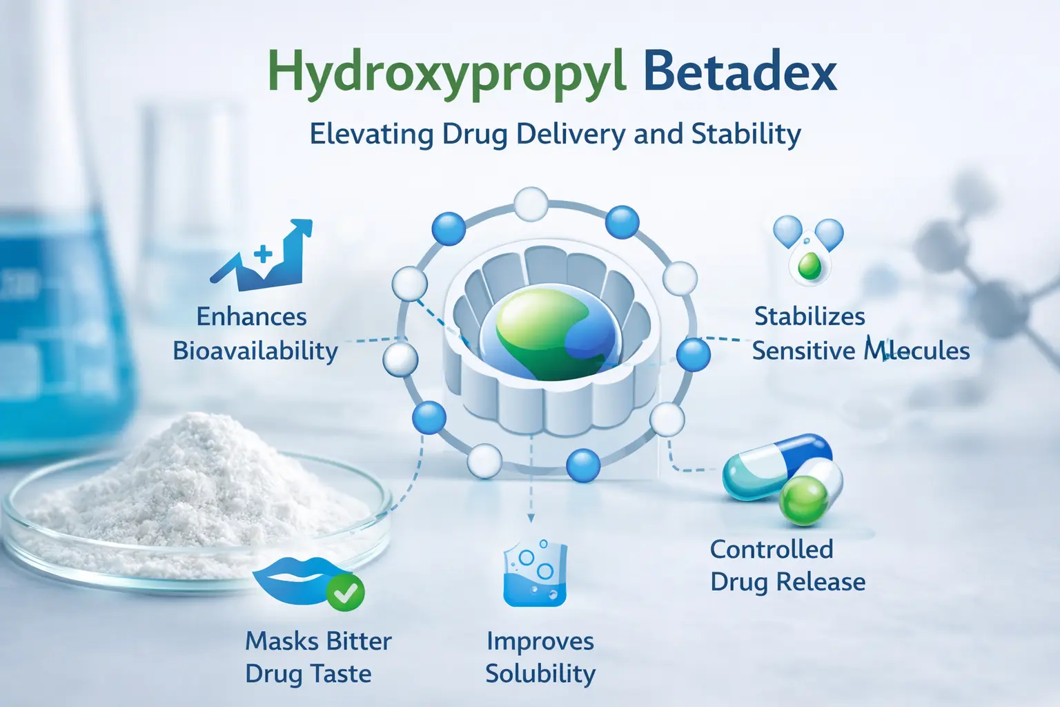 Hydroxypropyl Betadexer en revolutionerende medicinsk ingrediens, der gør lægemidler, der ikke opløses godt, til formuleringer, der virker meget godt. Der er mange gode ting ved dette ændrede cyclodextrinderivat, såsom bedre lægemiddelopløselighed, bedre biotilgængelighed og bedre stabilitet. Molekylær kapselteknologi laver stabile inklusionskomplekser, der omgår problemer, der kommer op med andre formuleringer. Forskere i den farmaceutiske industri over hele verden bruger denne fleksible polymerbærer til at forbedre lægemiddelleveringsmetoder, sænke toksiciteten og få ensartede terapeutiske resultater til både oral og injicerbar anvendelse.